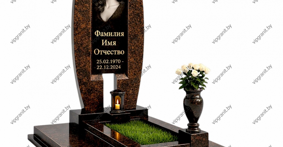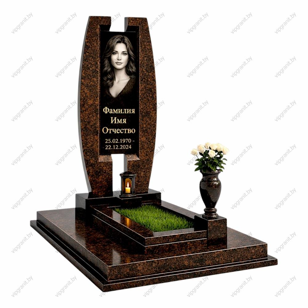 Вытянутые, строгие линии стелы словно устремляются в небо, придавая захоронению статность и достоинство. Открытый цветник у основания дает возможность высадить любимые цветы ушедшего, каждую весну наполняя это место жизнью, а стеклянная лампада убережет огонек свечи от ветра в дни ваших визитов. Мы понимаем, как тяжело заниматься организацией благоустройства в такие моменты, поэтому берем на себя все заботы по изготовлению и бережной установке. Вы можете заказать этот гранитный комплекс с доставкой на любое кладбище в Минске, Новогрудке или Гродно.