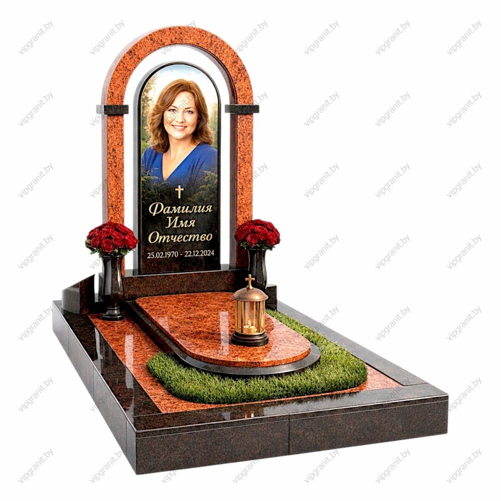 Описание: Есть монументы, которые говорят сами за себя, без слов передавая всю глубину скорби и уважения. Комплекс ОК4 — это величественное архитектурное сооружение в форме арки, символизирующее врата, через которые душа переходит в лучший мир. Роскошный дуэт насыщенного красного гранита с его неповторимым природным рисунком и безупречно черного камня создает поистине королевскую эстетику, достойную самых дорогих людей.