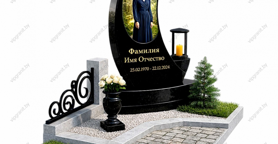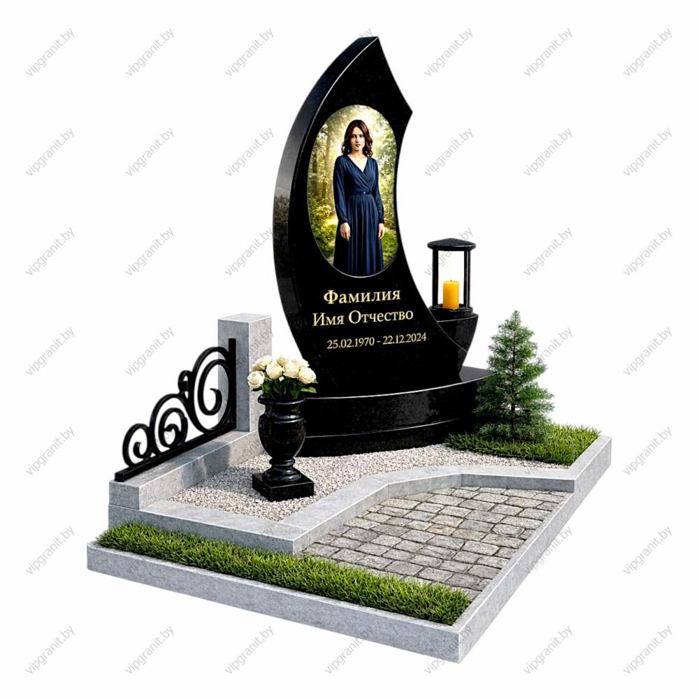 Асимметричная стела из черного гранита искусно дополнена изящной кованой оградой, которая добавляет композиции воздушности и аристократизма. Особенная деталь комплекса — небольшая архитектурная ниша с лампадой, которая будет бережно хранить огонек вашей любви. Продуманное основание со светлой плиткой, имитирующей брусчатку, делает место захоронения аккуратным, благородным и не требующим сложного ухода. Мы создаем не просто надгробия, а настоящие символы памяти. Оформить заказ на этот уникальный одиночный комплекс с доставкой в Гродно, Минск или Новогрудок можно у наших специалистов.