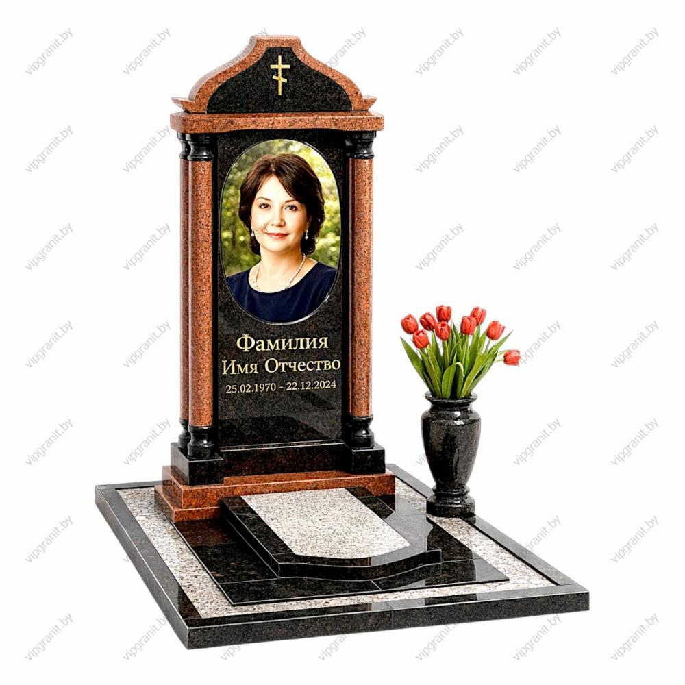 Одиночный гранитный комплекс ОК-7 — классический памятник из натурального гранита с декоративными элементами и крестом, предназначенный для оформления места захоронения в Минске и Минской области. Комплекс выполнен в традиционном стиле и отличается выразительным дизайном и благородным сочетанием материалов. Памятник изготовлен из прочного гранита (габбро-диабаз и цветной гранит), устойчивого к влаге, морозам и перепадам температур. Камень сохраняет насыщенный цвет, полировку и чёткость гравировки на протяжении десятилетий. Комплекс ОК-7 включает: — вертикальную стелу с художественным оформлением и крестом — портретную зону с фотомедальоном или гравировкой — прочное основание и тумбу — цветник или благоустроенную зону — декоративные элементы (ваза, ограда, лампада по желанию) Гранитная мастерская ООО «ВИПГРАНИТ» выполняет изготовление памятников в Минске под ключ: — разработка индивидуального 3D-проекта — согласование дизайна до производства — собственное производство без посредников — профессиональная гравировка портретов и надписей — доставка и установка на кладбище Благодаря 3D-визуализации вы заранее увидите, как будет выглядеть мемориальный комплекс, что позволяет точно согласовать все детали и избежать ошибок. Закажите одиночный гранитный комплекс ОК-7 в Минске — создадим классический, долговечный и эстетичный памятник с гарантией качества и профессиональной установкой.