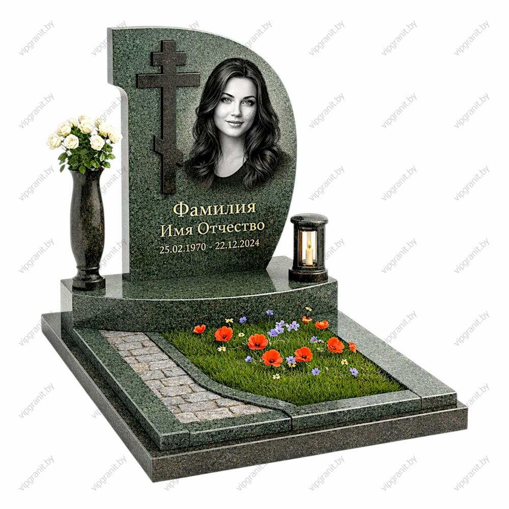 Нижняя часть памятника выполнена с заботой о будущем уходе: закрытая надгробная плита сохраняет аккуратный вид в любое время года, а небольшой открытый цветник позволяет посадить живые растения, символизирующие продолжение жизни. Мы понимаем, как важно сохранить воспоминания достойно. Предлагаем заказать этот одиночный гранитный памятник с гарантией долговечности. Выполняем доставку и деликатную установку комплексов в Воложине и Воложинском районе.